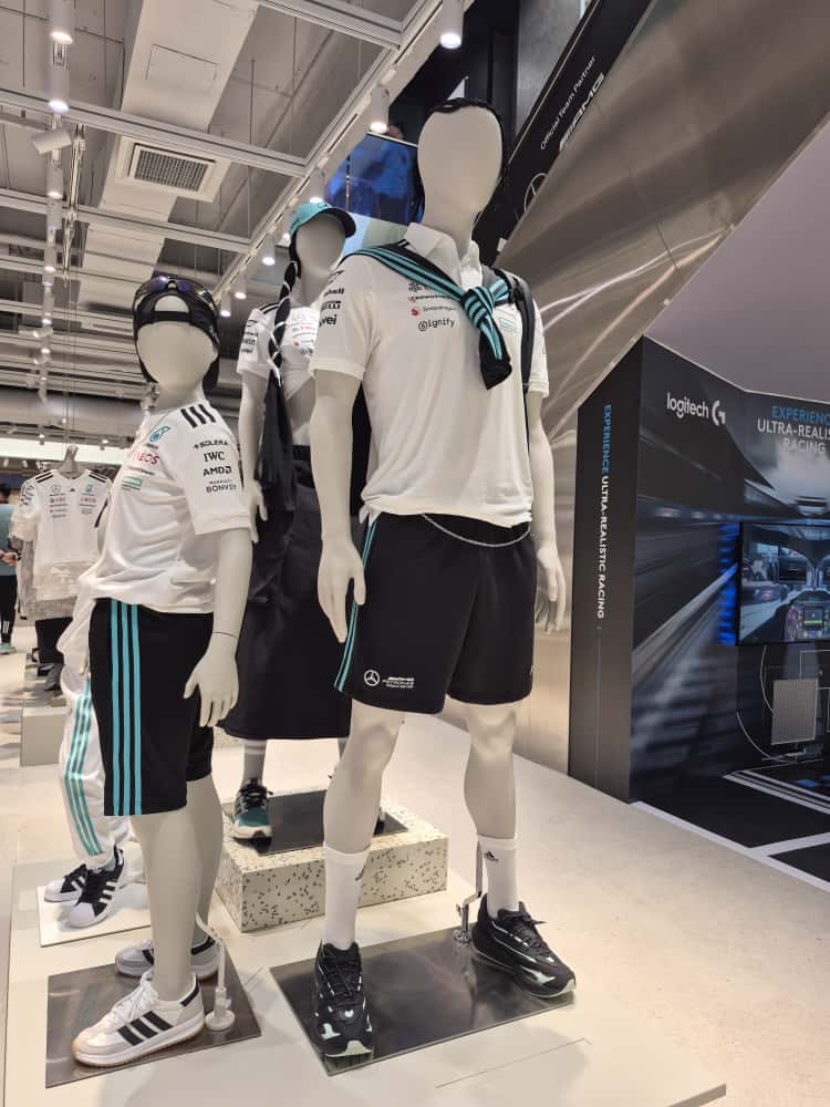 Satu ruangan untuk sukan permotoran turut dikhaskannya dengan menawarkan pelbagai jenis pakaian dan barangan kolaborasi Adidas bersama Mercedes-AMG Petronas F1 Team selain menempatkan sebuah permainan simulator Formula 1.