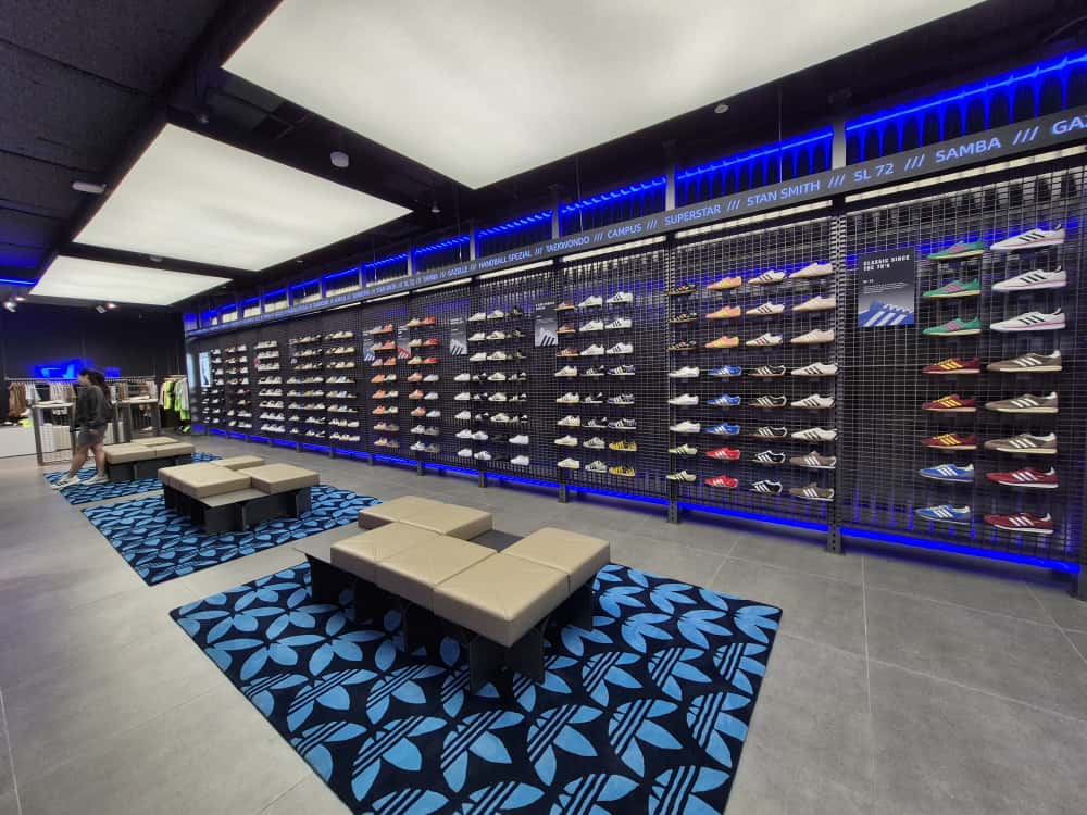 Di aras atas, Adidas menumpukan ruangan itu dengan meletakkan pelbagai pakaian dengan fesyen klasik mahupun moden serta kasut sniker sub-jenamanya seperti Superstar, Samba, Spezial, Campus, Gazelle, Stan Smith dan lain-lain lagi.