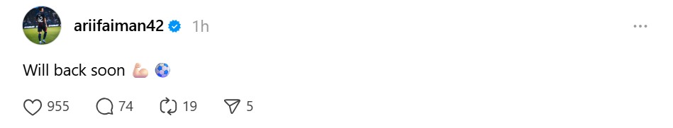 “Will (be) back soon,” tulisnya menerusi akaun Thread rasminya, pada hari ini.
