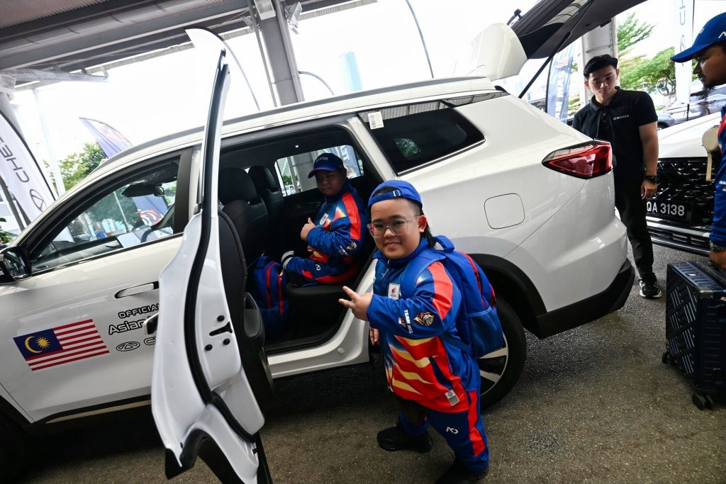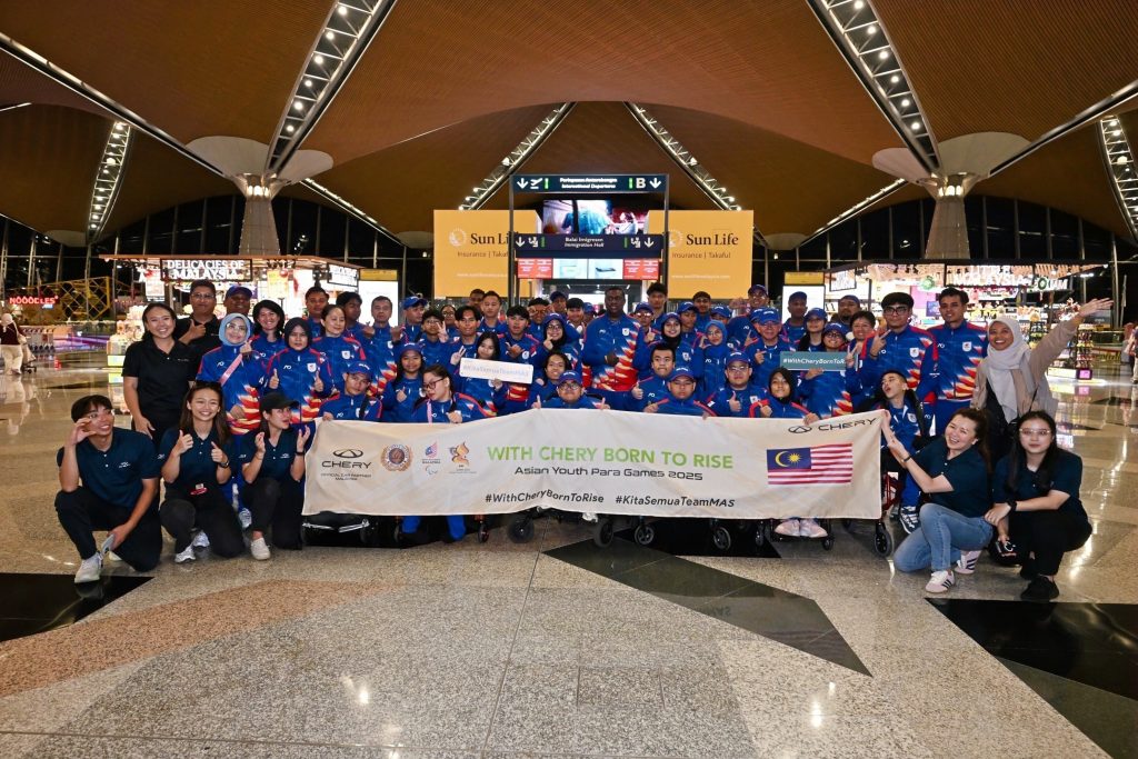 Keberangkatan anggota Kontinjen Malaysia ke Sukan Remaja Para Asia 2025 dari Pusat Kecemerlangan Sukan Paralimpik Malaysia di Kampung Pandan, Kuala Lumpur ke Lapangan Terbang Antarabangsa Kuala Lumpur (KLIA) dibawa oleh konvoi kenderaan Chery.